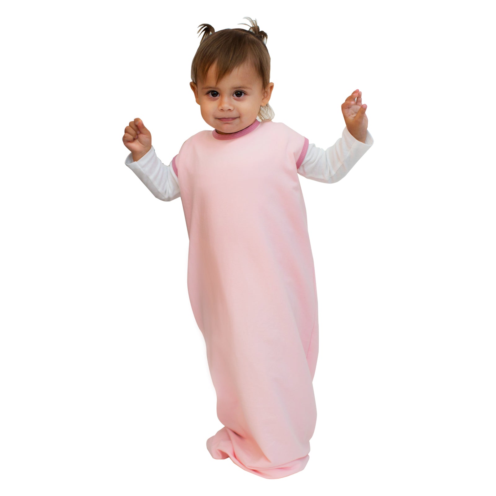 Your little one will enjoy cozy nights in our soft pink sleep sack.